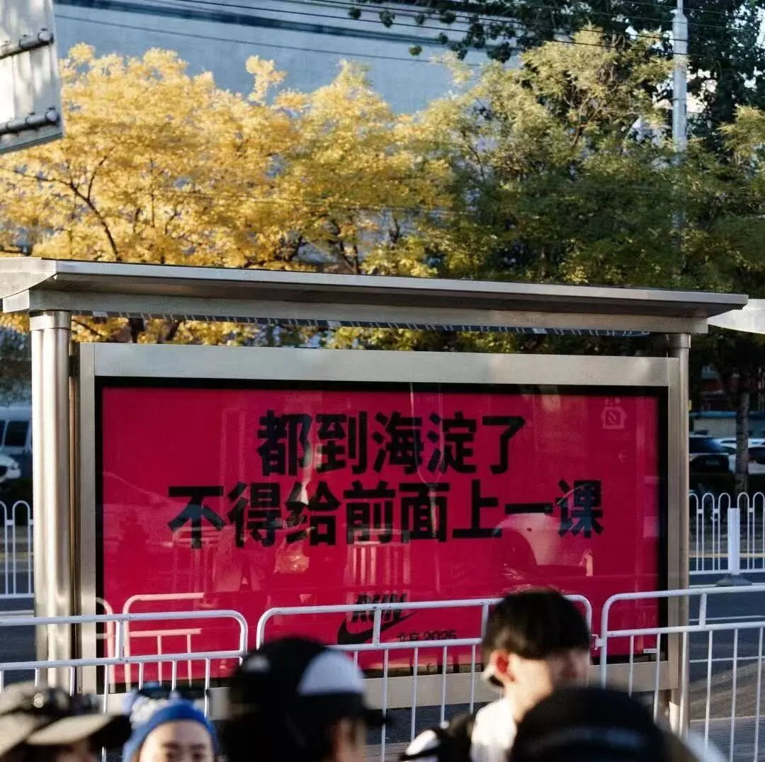 用“都到海淀了 不得给前面上一课?”绑定地域文化梗,将海淀区“教育强区”的标签转化为竞技语境的激励,让本地跑者秒懂共鸣;