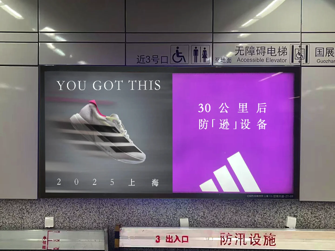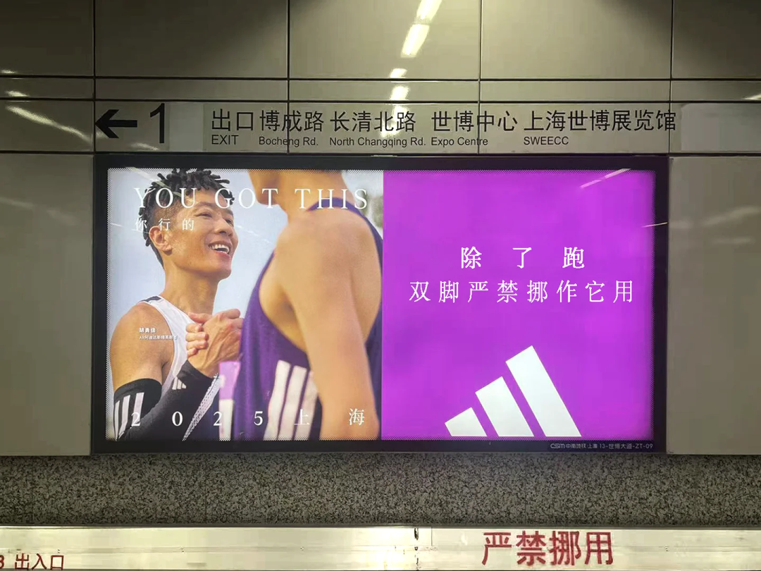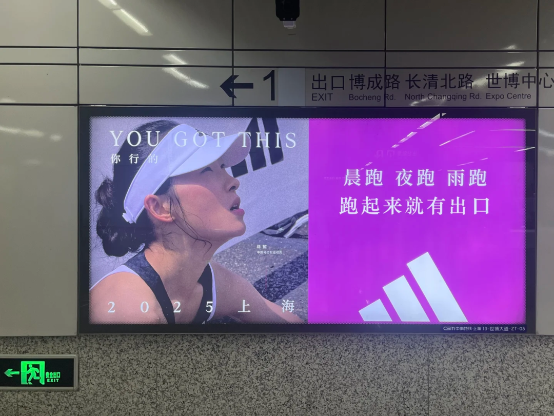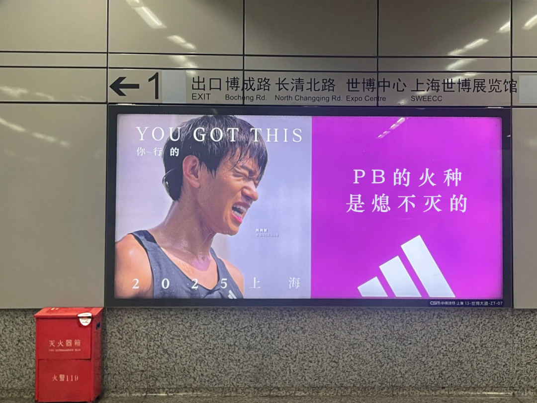 灭火器、出口标志、防汛设施、严禁挪用…… 阿迪上马海报这波位置,创作环境完美!
