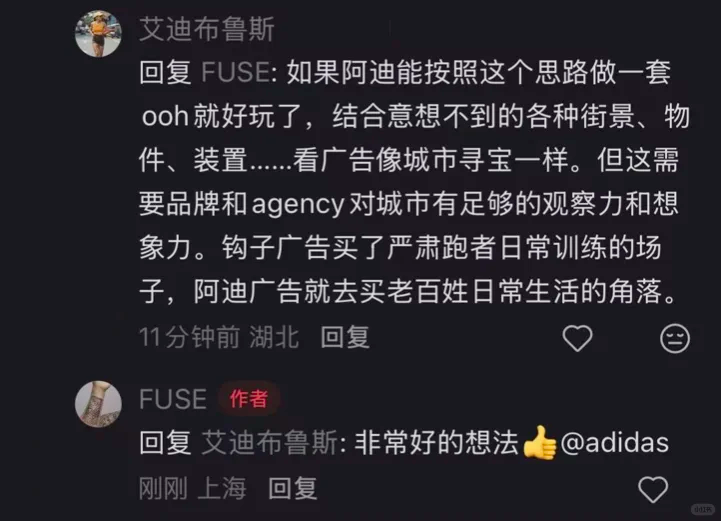 这是博主@FUSE的二创海报堪称神来之笔,将阿迪“火种是熄不灭的”核心主张与旁侧灭火器形成戏剧化反差,以“灭火器挑战权威”的趣味解读,让品牌主张更具记忆点。