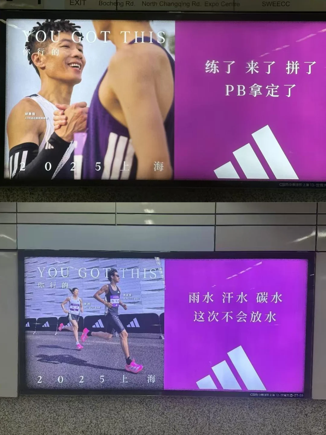 马拉松赛道上的文案,从来不是简单的标语,而是跑者42.195公里征程中的精神锚点。北京马拉松与上海马拉松期间,正是耐克与阿迪达斯的文案博弈!