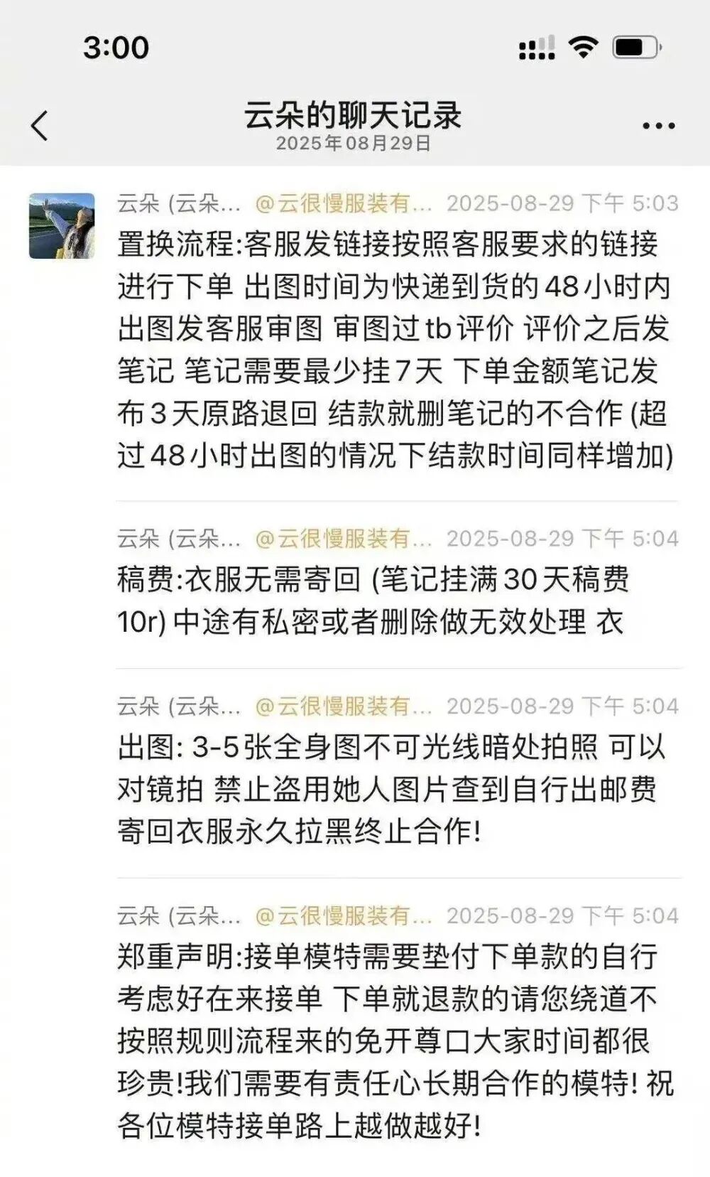 “置换”则是博主垫钱下单、拍照发帖后,店铺把钱退给博主,衣服也不用还。