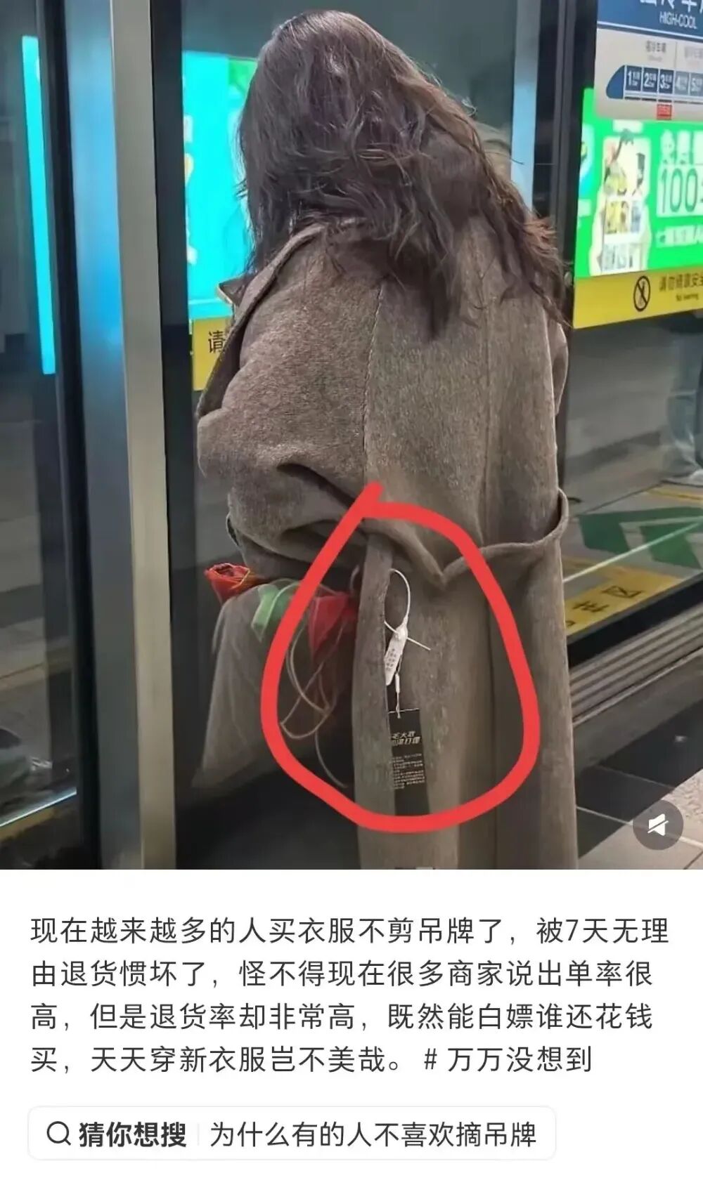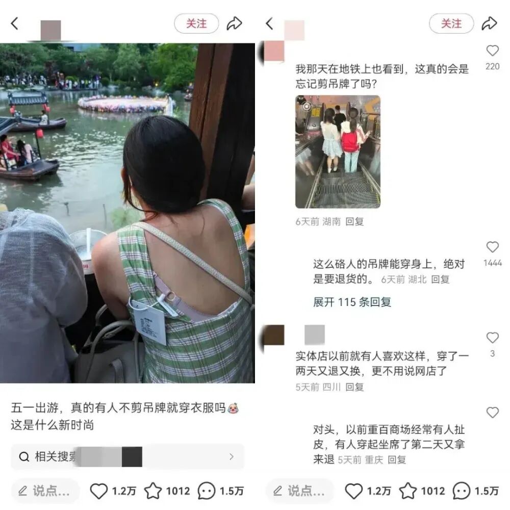 更糟糕的是,“巨型吊牌”刷屏后,一些人开始对忘摘吊牌、或吊牌没处理好的普通消费者疯狂网暴。