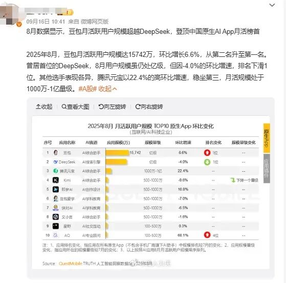 可几个月过去,在AI原生APP的活跃用户规模上,文心一言并没有占据上风。用户提起AI,甚至很少第一时间想到百度。
