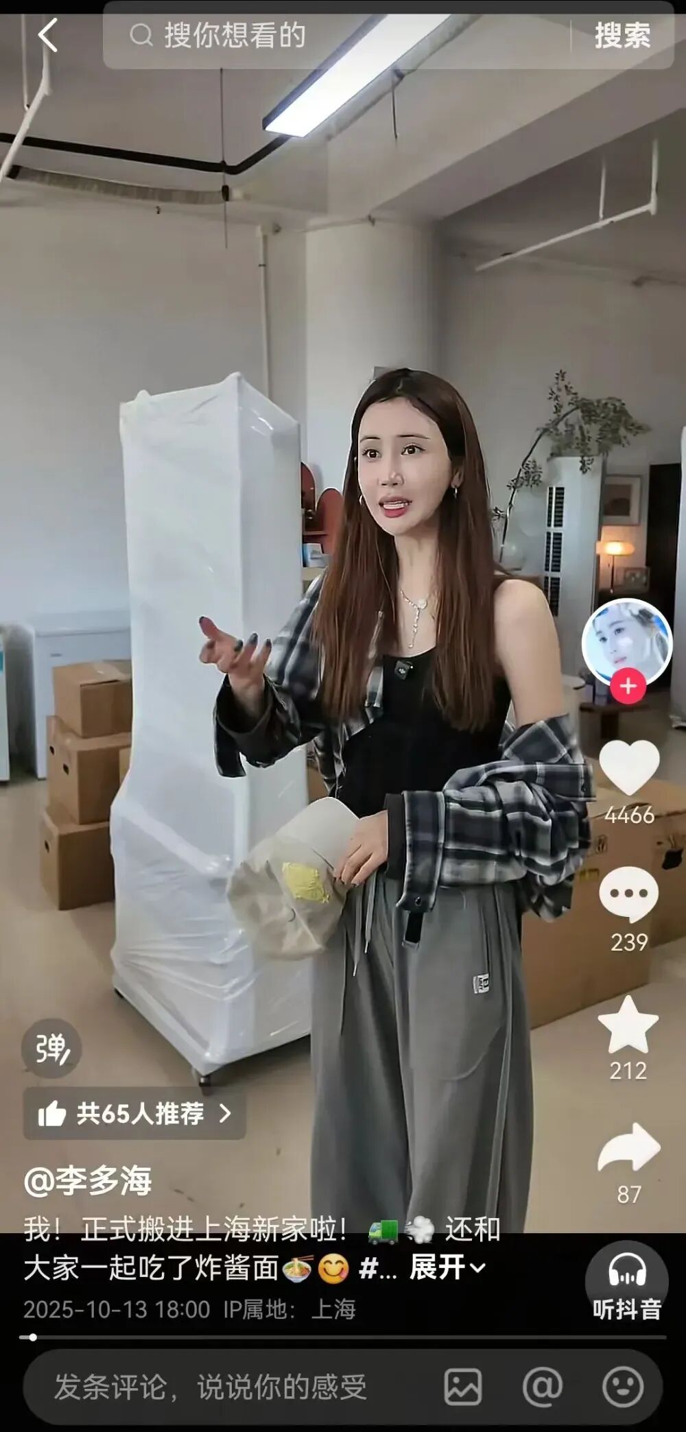 她的抖音内容本身也很“接地气”,生活 vlog、家庭日常、护肤心得,没有明星的距离感,反而更像朋友间的分享。