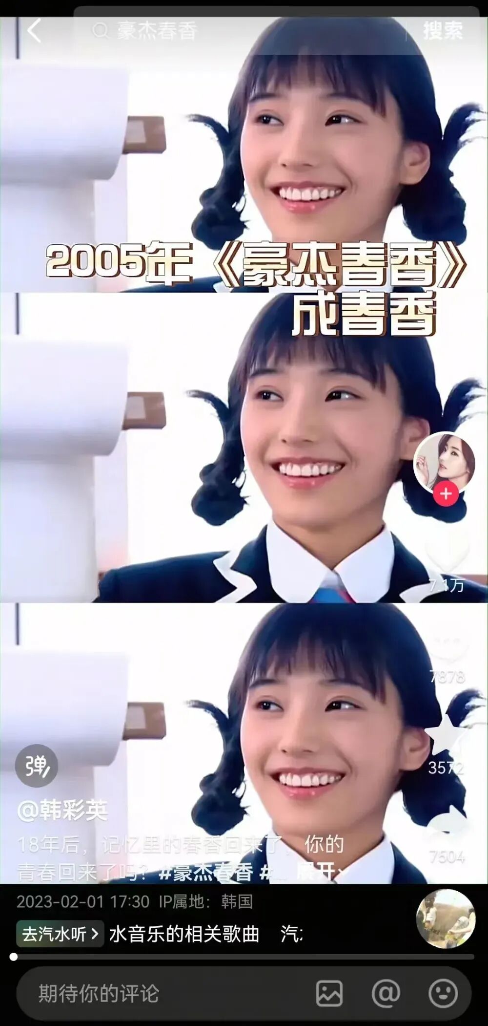 凭借《豪杰春香》的国民度,她在抖音积累了三十多万粉丝,粉丝来源更多是“怀旧流量”。