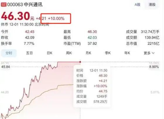 12月1日,中兴通讯股价直接涨停;12月2日,AI手机概念股持续活跃,多只相关股票涨幅超过5%。