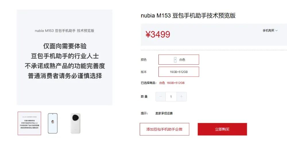 首款搭载豆包手机助手的努比亚M153,在中兴商城上线即售罄。在二手平台上,原本3499元起售的机型,溢价最高冲到7500元,仍有人趋之若鹜。