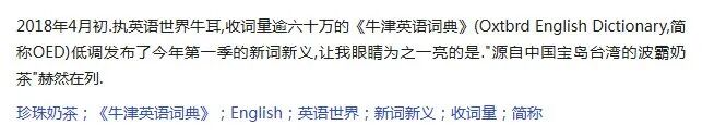 还有说法称“波霸”是“boba”的音译,《牛津英语词典》早就收录了“boba”一词,明确将其定义为“源自台湾的奶茶小料”,相当于给“波霸”正了名。