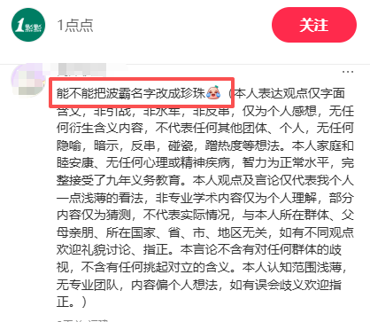 事情的起因很简单,有部分网友留言建议一点点把波霸改叫珍珠。
