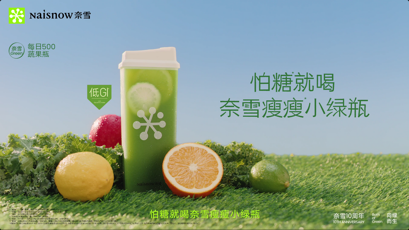 此次官宣同步主推的产品是奈雪的首个低GI(血糖生成指数)认证产品——“瘦瘦小绿瓶”。该产品以其“轻盈喝,轻松享”的特点,成为品牌讲述健康故事的重要载体。围绕代言人合作,奈雪创作了主题广告片,并推出了购买指定套餐可获得限定环保袋和香氛卡的消费者活动。