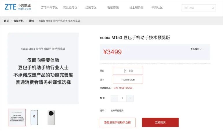 值得注意的是,在这次合作中,AI产品体验由抖音定义,硬件由努比亚(中兴旗下)负责,仅进行小规模发售;