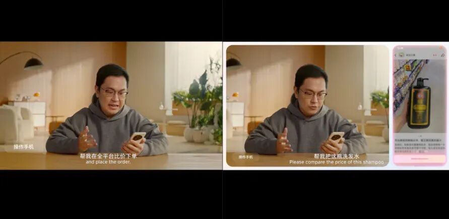 除了支付环节出于安全考虑需由用户亲自确认,其余如理解任务、跳转应用、筛选信息、比价选品等步骤,皆可由AI在后台独立完成。