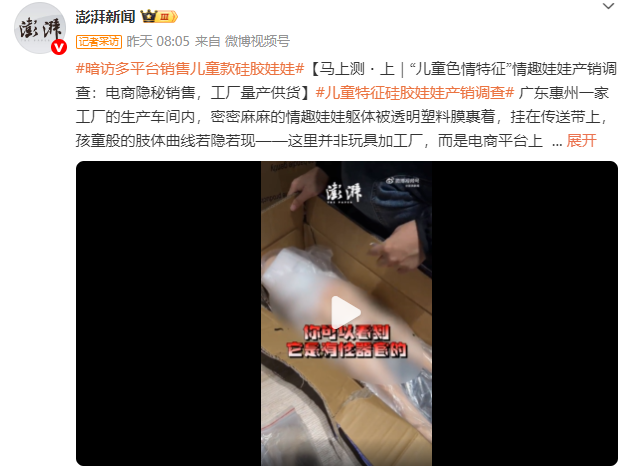 近期,一条从广东工厂车间直通国内主流电商平台的“幼女款”情趣玩偶灰色产业链,被澎湃新闻彻底曝光。