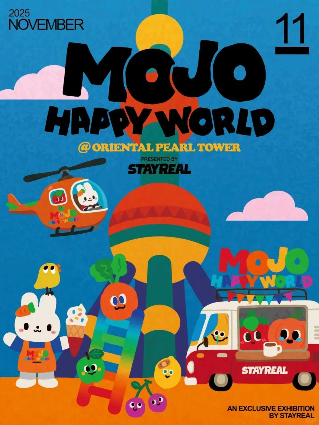 时隔一年,STAYREAL再次携旗下IP「MOJO CARROT(魔魔胡胡胡萝卜,下称:卜卜)」及MOJO FAMILY成员重返梦想起点——世界级地标东方明珠塔。2025年的全新企划「MOJO HAPPY WORLD」集结了多个创新内容板块,为城市文旅注入创新活力。