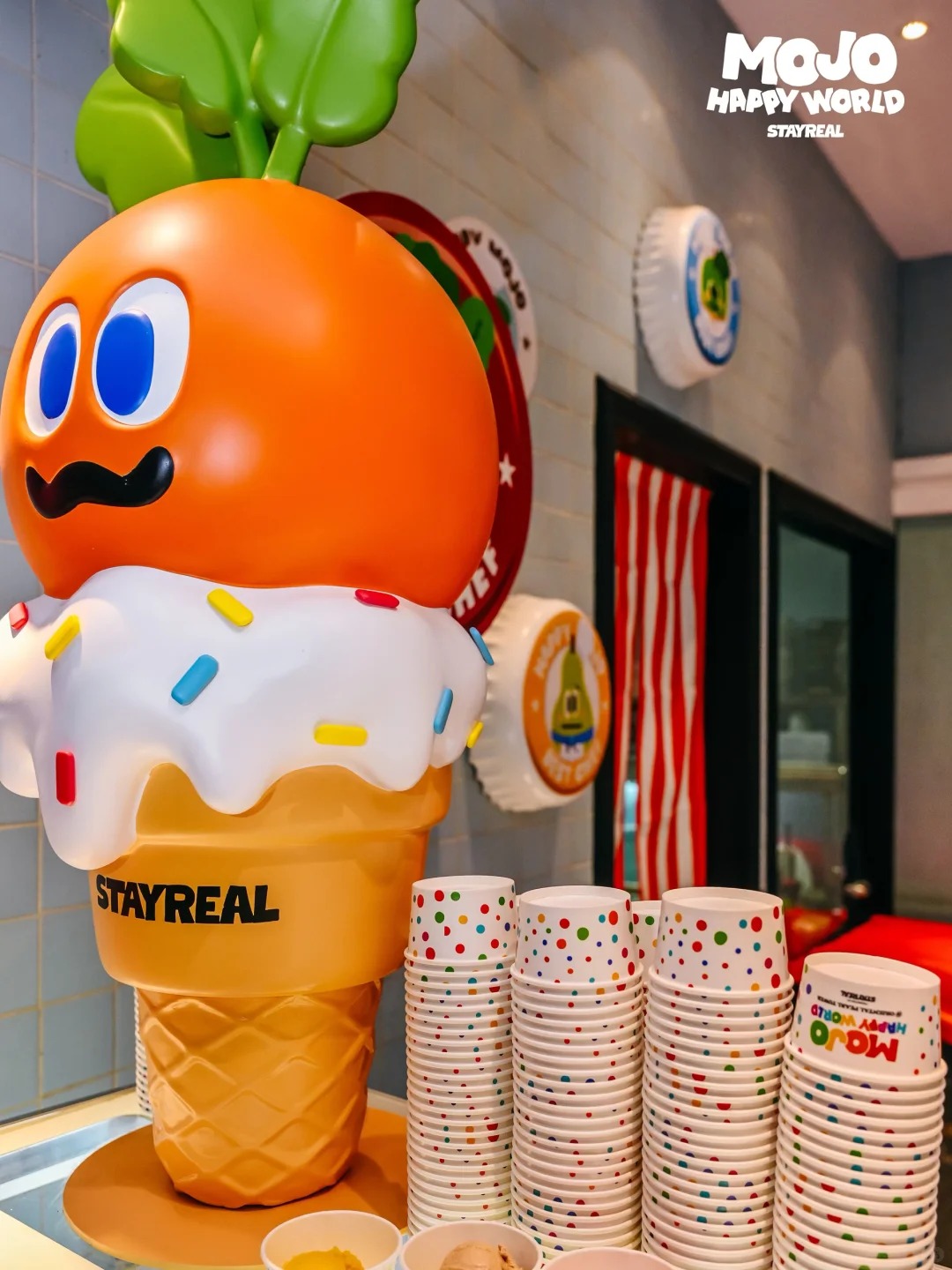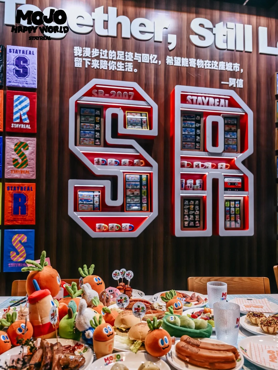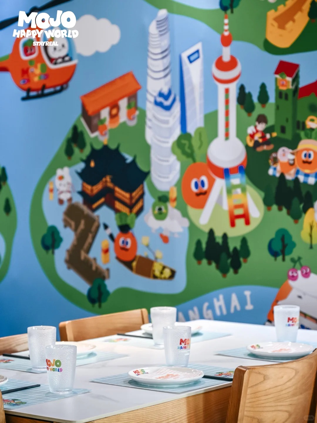 更重磅的是STAYREAL携手用满载快乐DNA的MOJO FAMILY,与东方明珠全新打造全球第一间「MOJO HAPPY WORLD之主题限定餐厅」。这一空间则以“从视觉到味觉的快乐延伸”为核心,打造可食、可玩、可体验、可互动的多维体验空间。