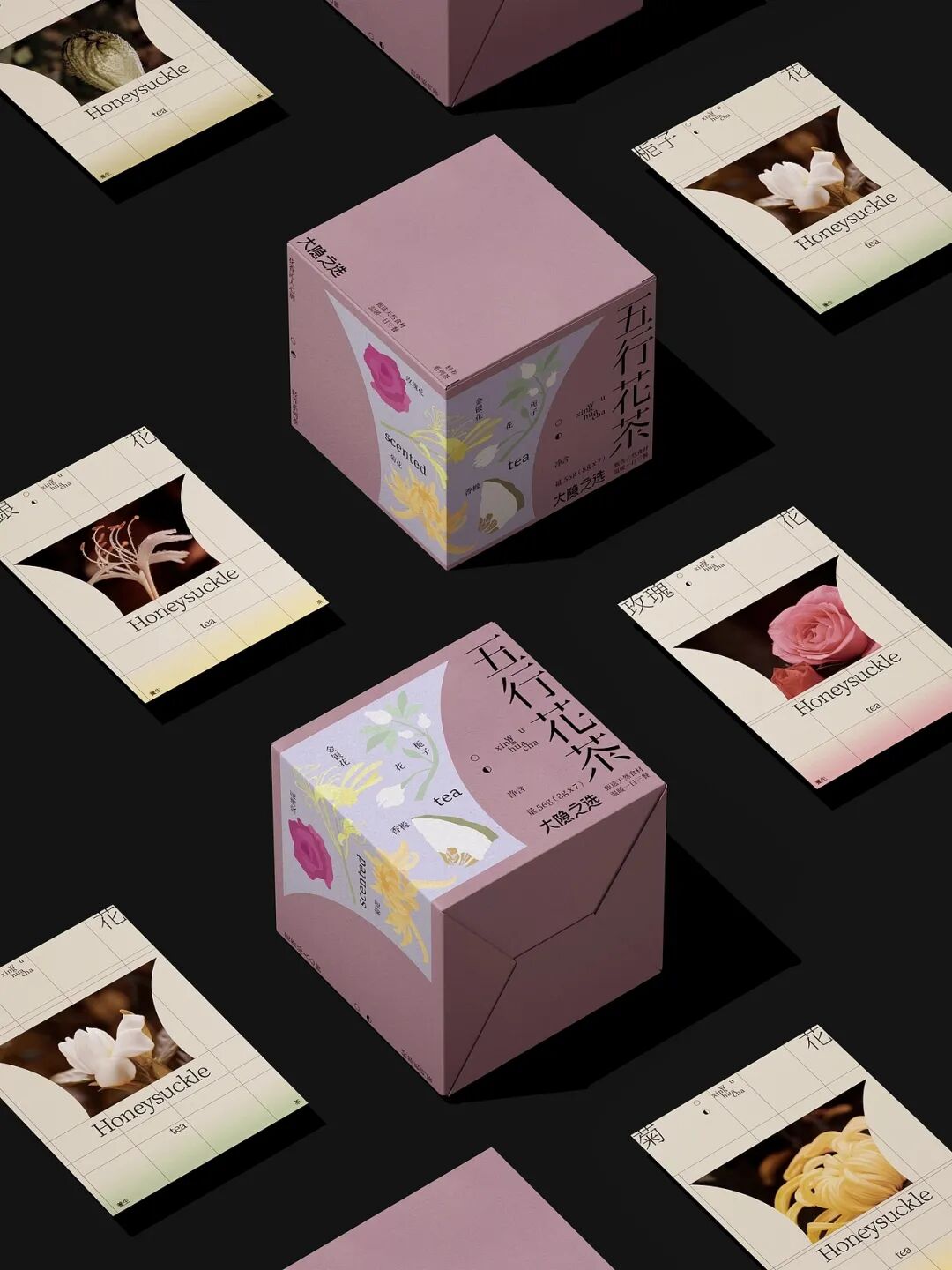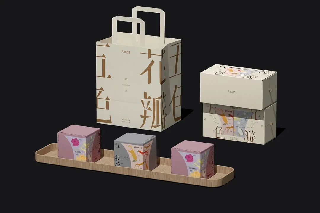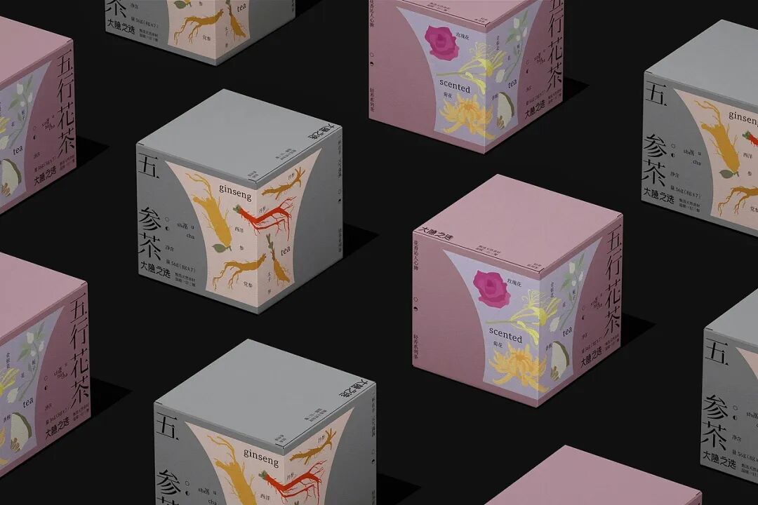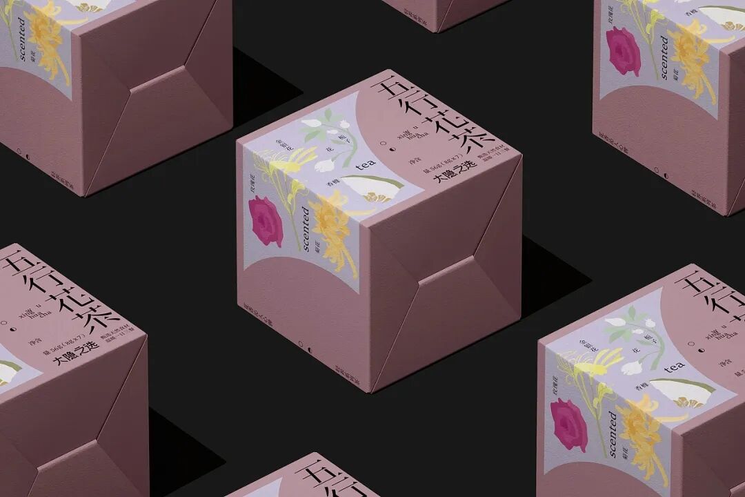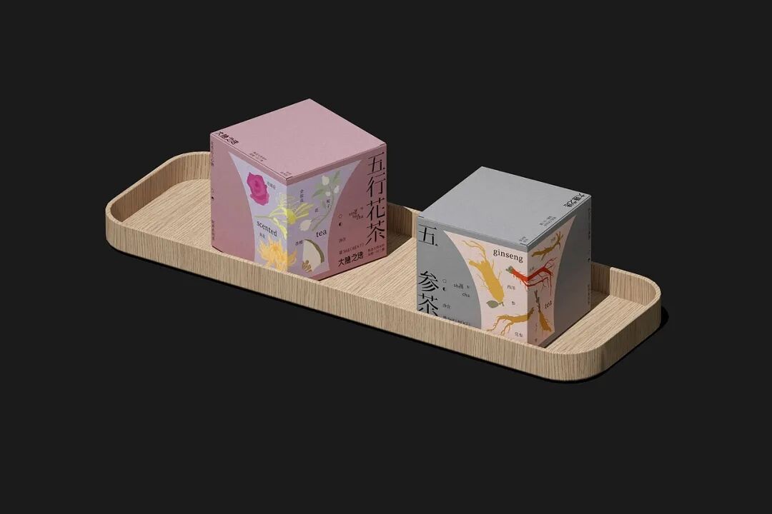 “五色花瓣”主题花茶,以传统五行文化、极简东方美学为创意内核,打造出兼具文化感与高级感的养生茶形象。