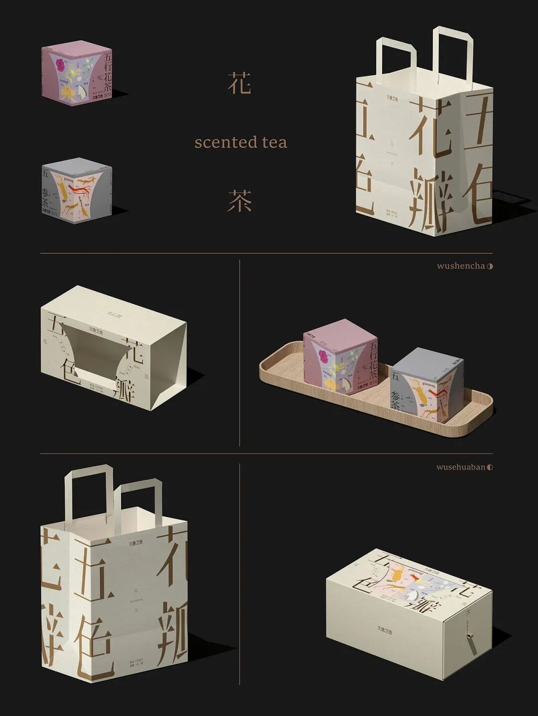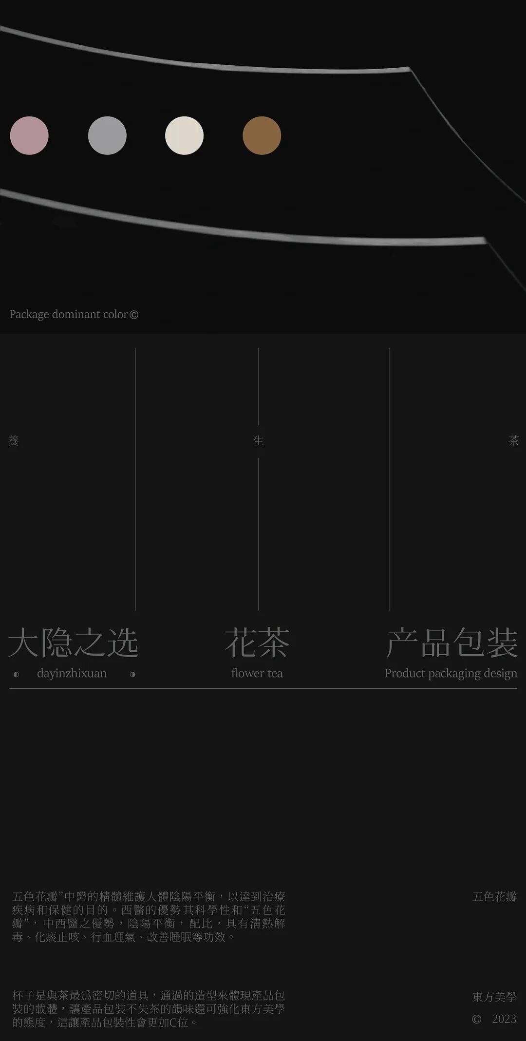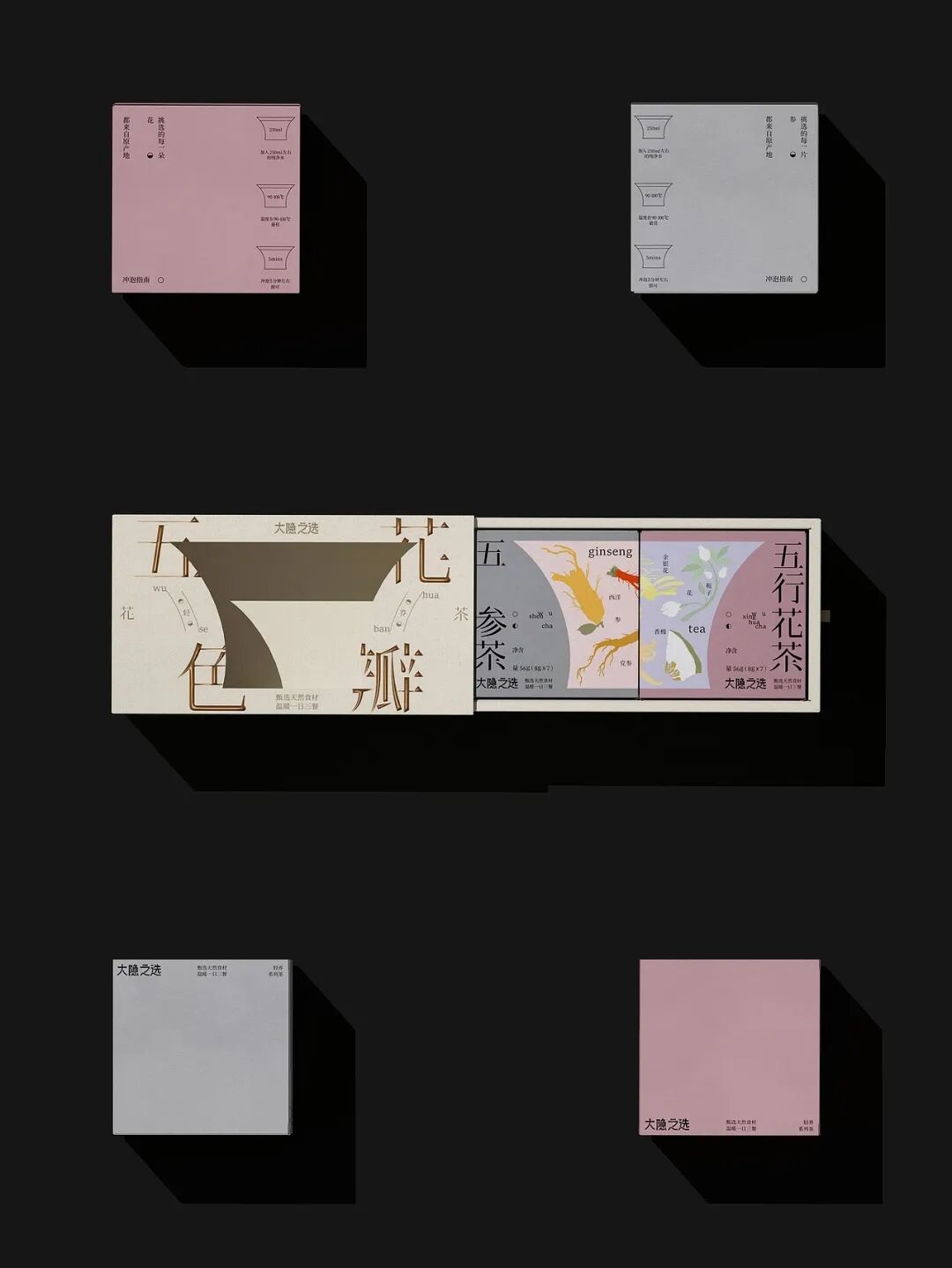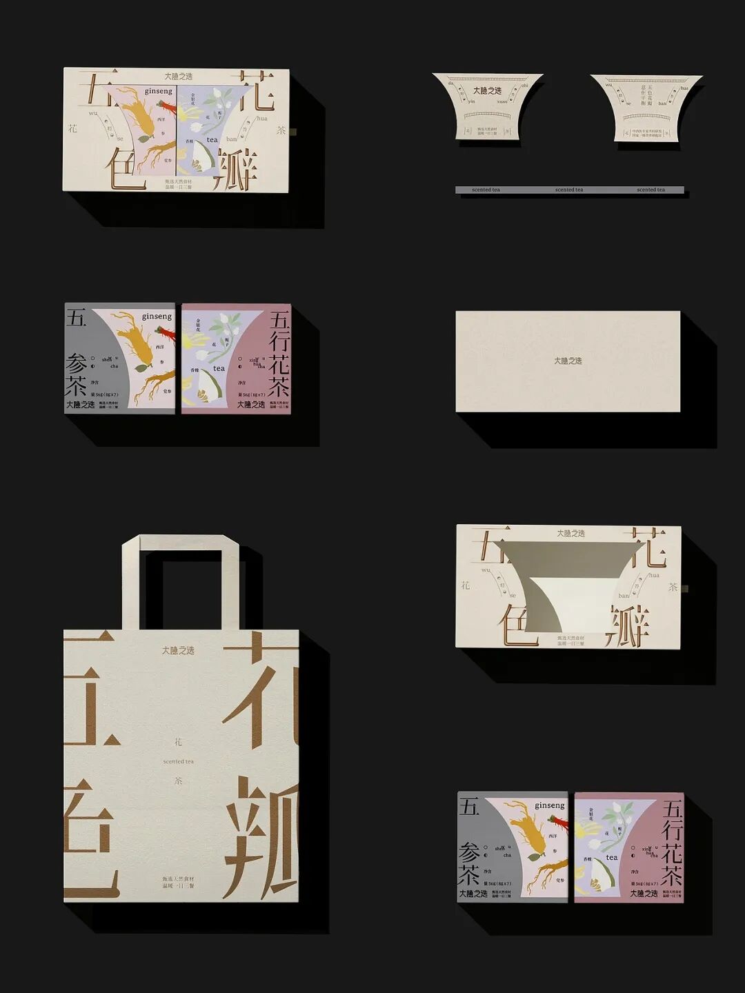 “五色花瓣”主题花茶,以传统五行文化、极简东方美学为创意内核,打造出兼具文化感与高级感的养生茶形象。