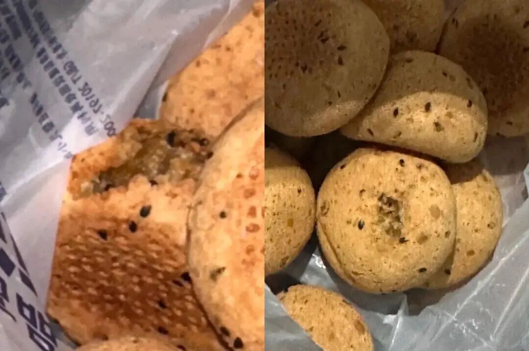 照片显示,部分麻薯表面存在不规则的凹陷和缺损,有疑似被啃食的痕迹。