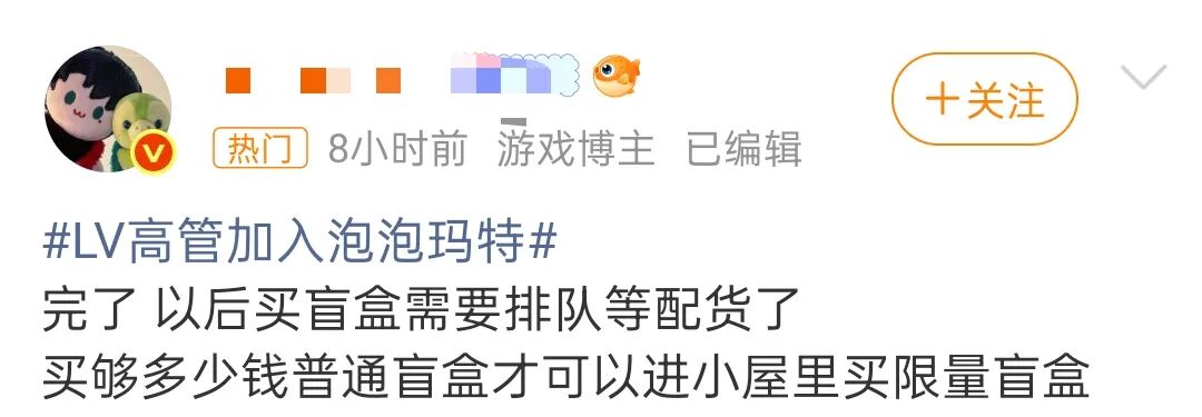 网友的脑洞与担忧瞬间刷屏:一边疯狂脑补 “Labubu 穿 LV 老花外套” 的名场面,一边瑟瑟发抖担心盲盒引入奢侈品 “配货制”,从此再也蹲不起心爱的小玩偶。