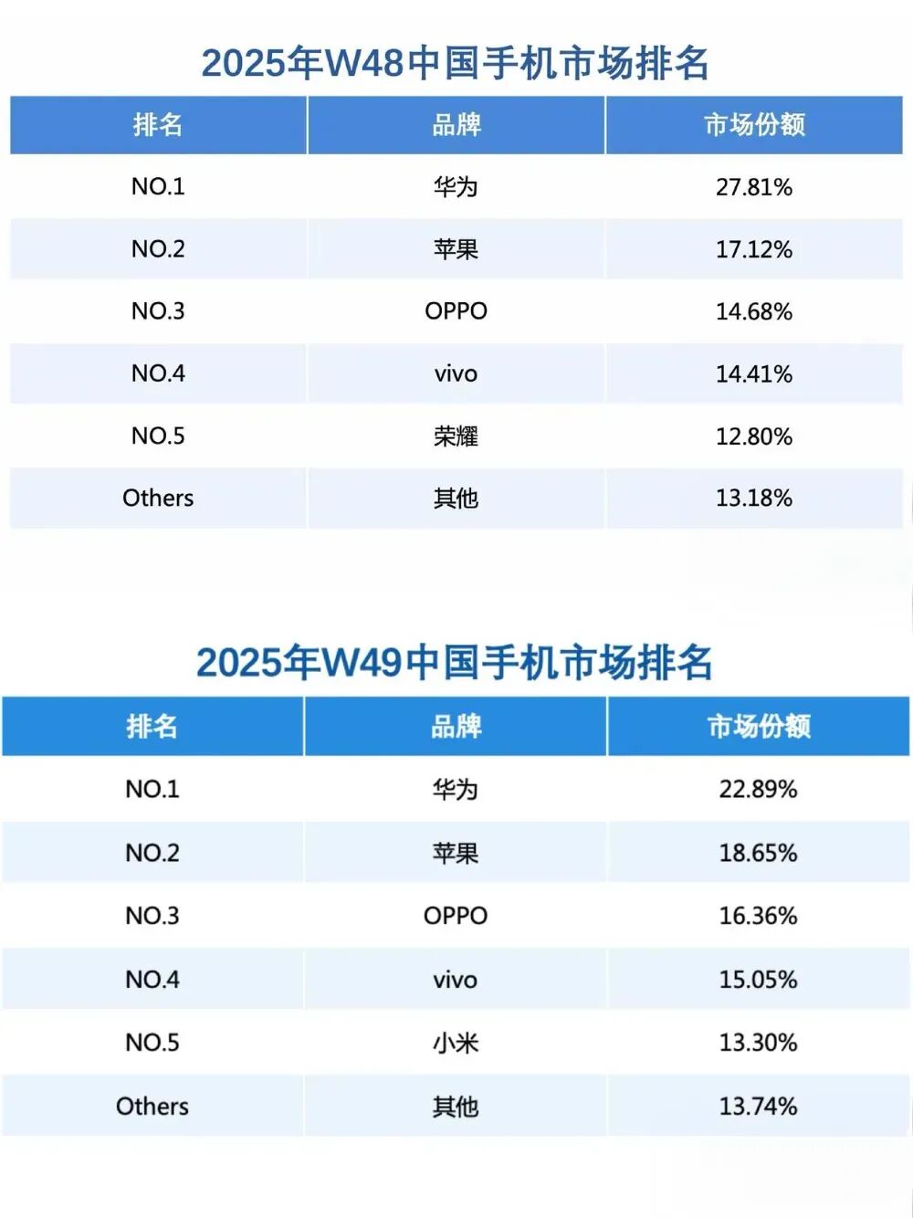 27.81%的市场份额,让华为时隔多年再度站上中国手机市场的顶端。连续两周超越苹果的成绩,像是一场蓄力已久的宣告。
