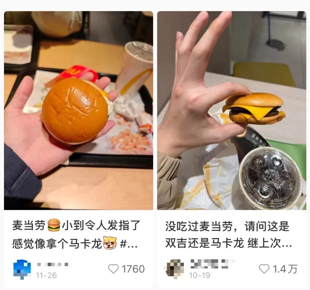 麦辣鸡腿堡的面包薄得“能透光”、双层吉士汉堡小到“挂书包上都看不清”……涨价之外,“缩水”成了社交媒体上更猛烈的火力点。