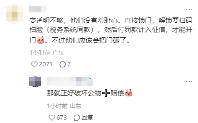 “直接锁门,解锁要扫码扫脸(税务系统同款),然后付罚款计入征信,才能开门。”