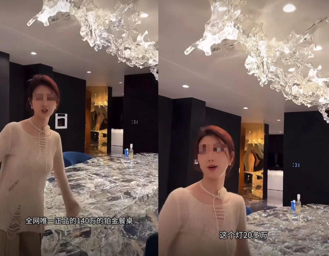 但网友发现,她曾自曝住杭州市中心1000多平的别墅,一年电费高达40多万,家里有140万的铂金餐桌,墙上安装有价值20万的吊灯。