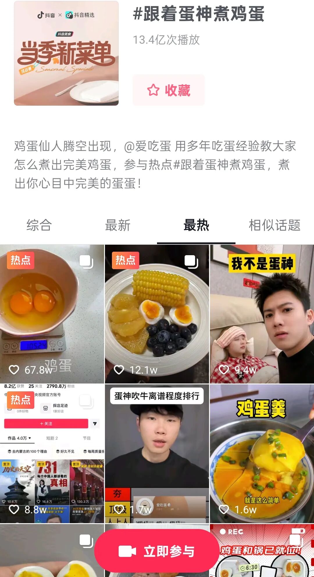 争议没挡住跟风潮流,“蛋神”的影响力以肉眼可见的速度扩散。#跟着蛋神煮鸡蛋 话题播放量很快突破13亿。