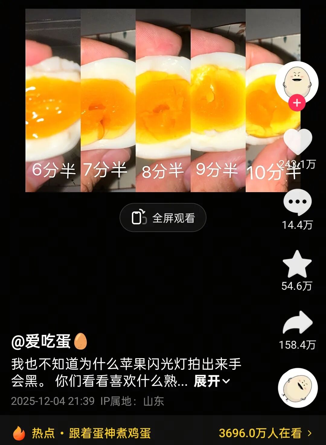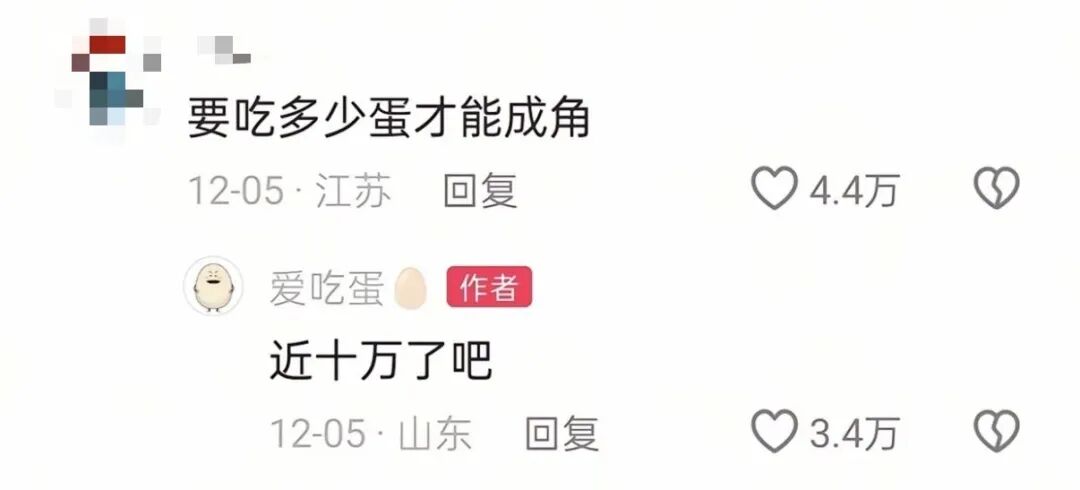 “蛋神”的走红堪称互联网奇迹。一位名叫“爱吃蛋”的博主,凭两条精准到秒的煮蛋评论,短短8天粉丝数从200余人飙升至356万,被全网封为“煮蛋仙人”。