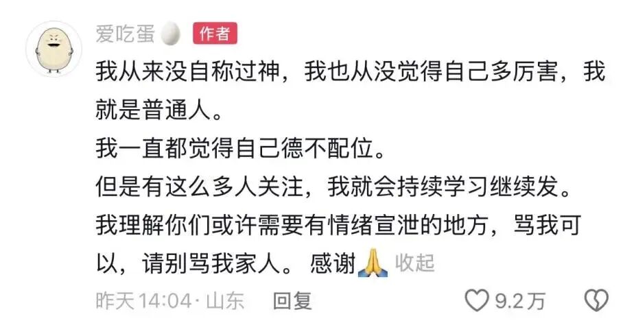 其实“蛋神”的走红,从来不是什么偶然,更不是所谓的“算法造神”,而是戳中了当下互联网的核心需求——真诚与实用。