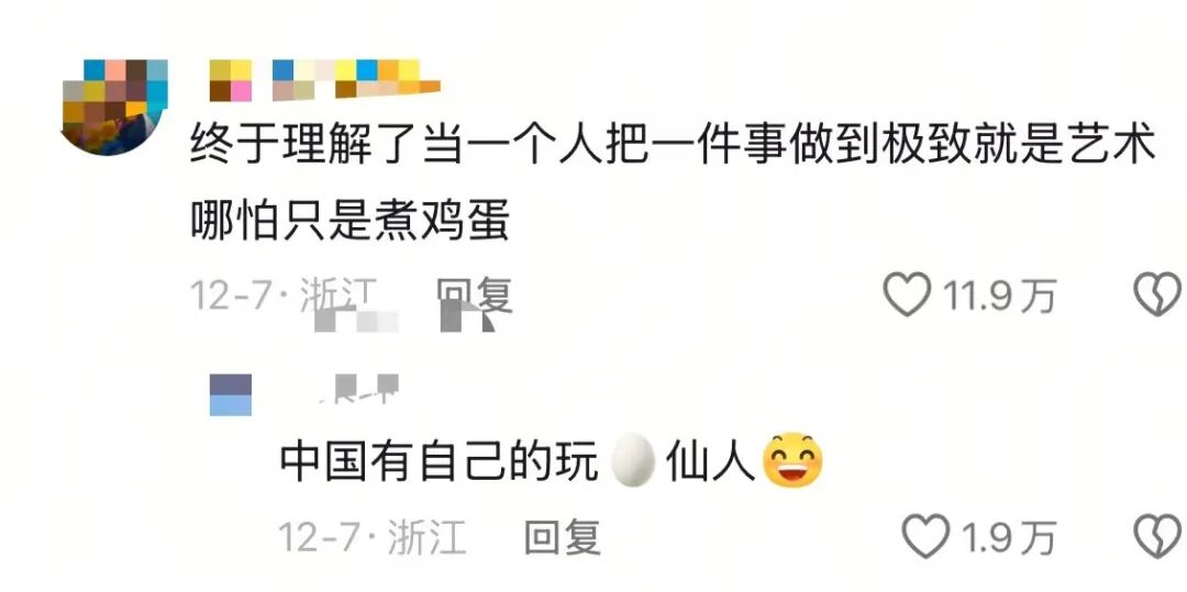 首先是内容稀缺性,谁能想到煮鸡蛋这种小事能被做到极致?这种“把平凡事做到专业”的反差感,本身就自带话题度;