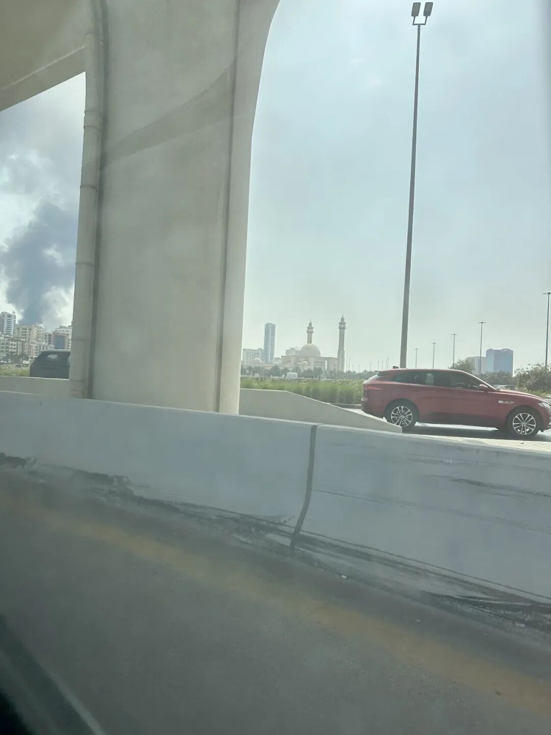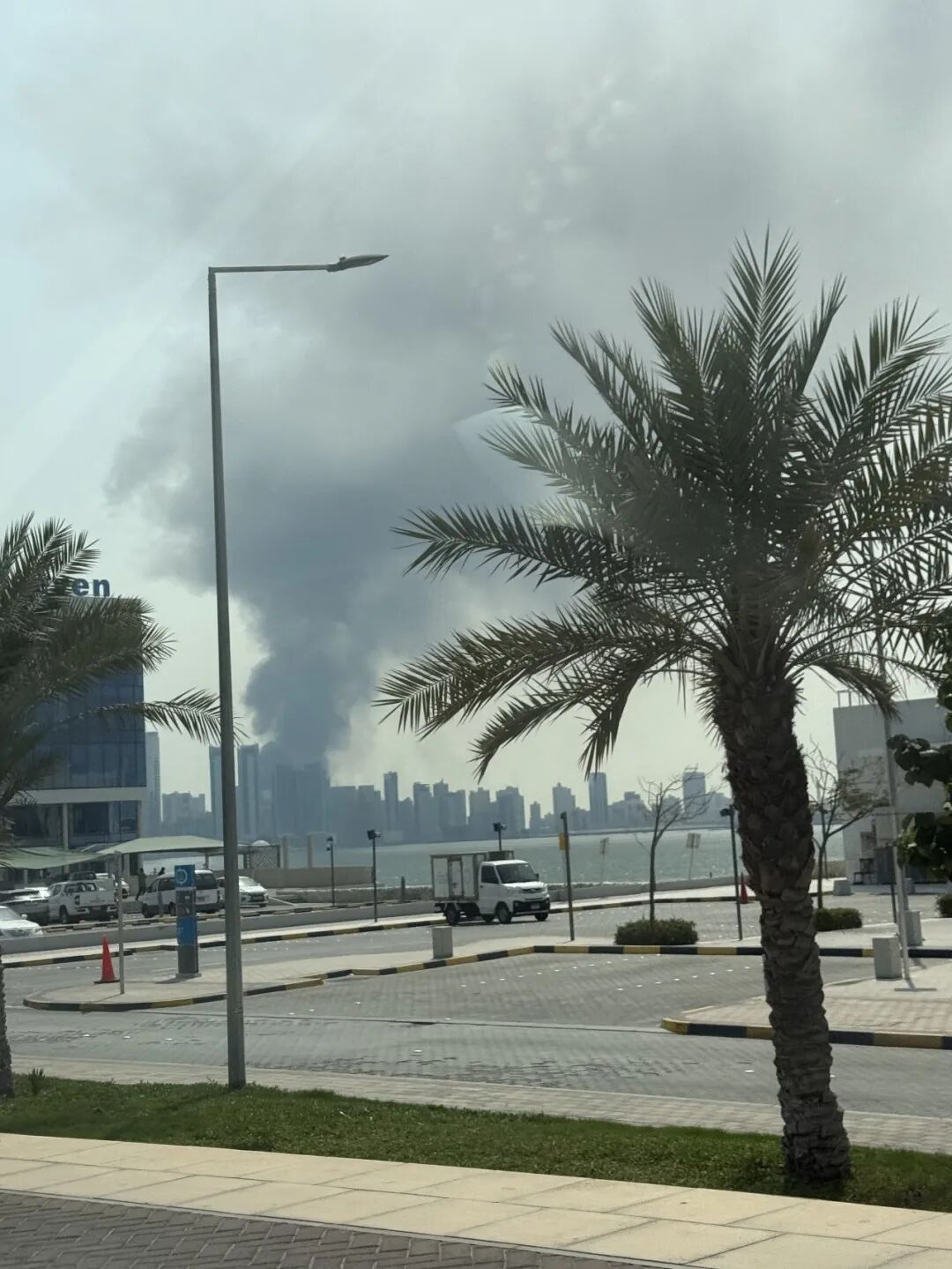 *巴林美军基地被袭后升起的浓烟(受访者提供)