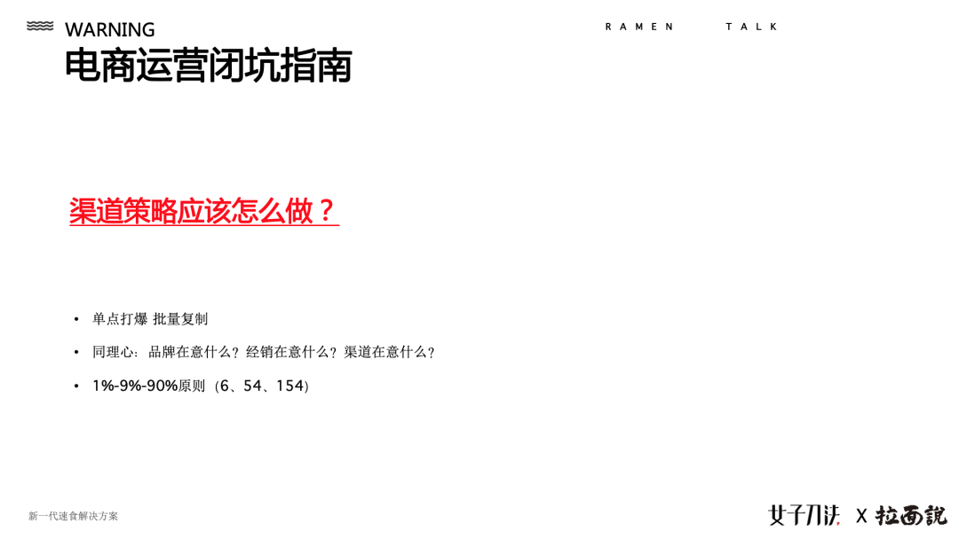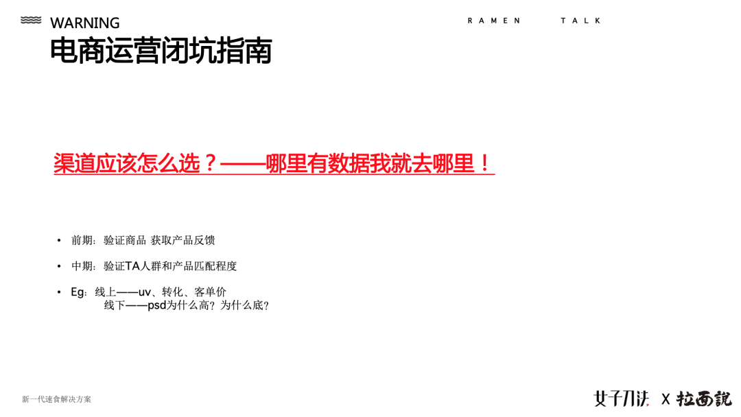 在产品验证阶段,拉面说在渠道上的策略有以下几条: