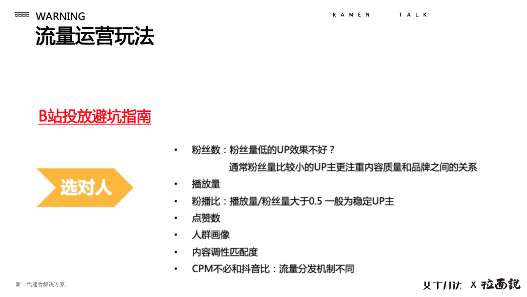首先,B站最主要的人群是Z世代。Z世代是敢赚敢花、消费能力非常强的群体,然而同样,他们的品牌忠诚度往往比较低。所以拉面说在做用户拉新时,会着重考虑建立品牌和Z世代的关联度,以增加用户黏性。