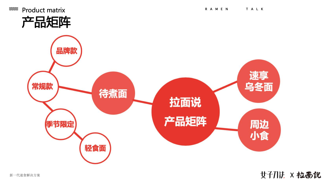 拉面说在做新一代速食的解决方案,品牌主旨是希望通过能媲美拉面馆的速食面产品,满足消费者对于这一特定品类的需求。