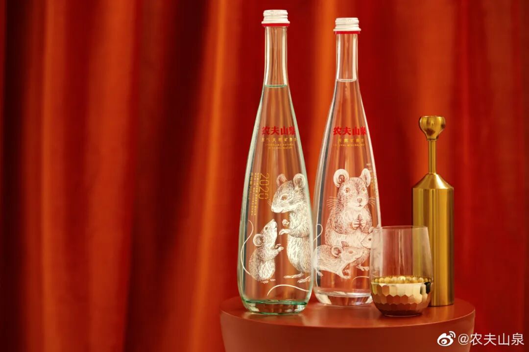 凭借着晶莹剔透的玻璃材质、上窄下宽的瓶身设计,以及精雕细琢的生肖图案,再加上吉祥美满的生肖祝福,农夫山泉一举成为了金砖国家会议、G20峰会的专用水。