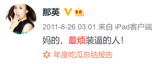 那时候,基本上众多名人大V就都会最先在新浪微博上发表意见,激烈讨论甚至是直接上场撕逼。令人印象最深的,要数韩寒和方舟子在微博上的骂战,包括今年被考古队挖出来的那英姐的经典语录,也都是以新浪微博作为平台的。