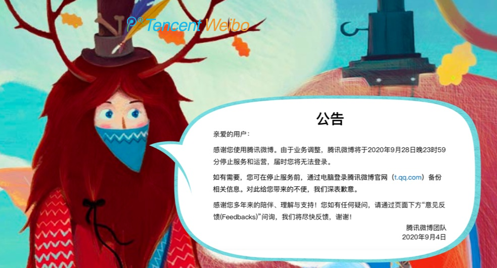 9月5日,腾讯微博官方宣布,将于9月28日23时59分停止服务和运营,届时将无法登录。