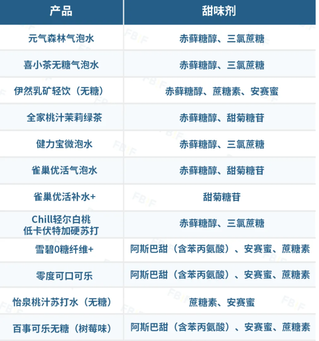部分无糖饮品使用的甜味剂,图源FBIF食品饮料创新