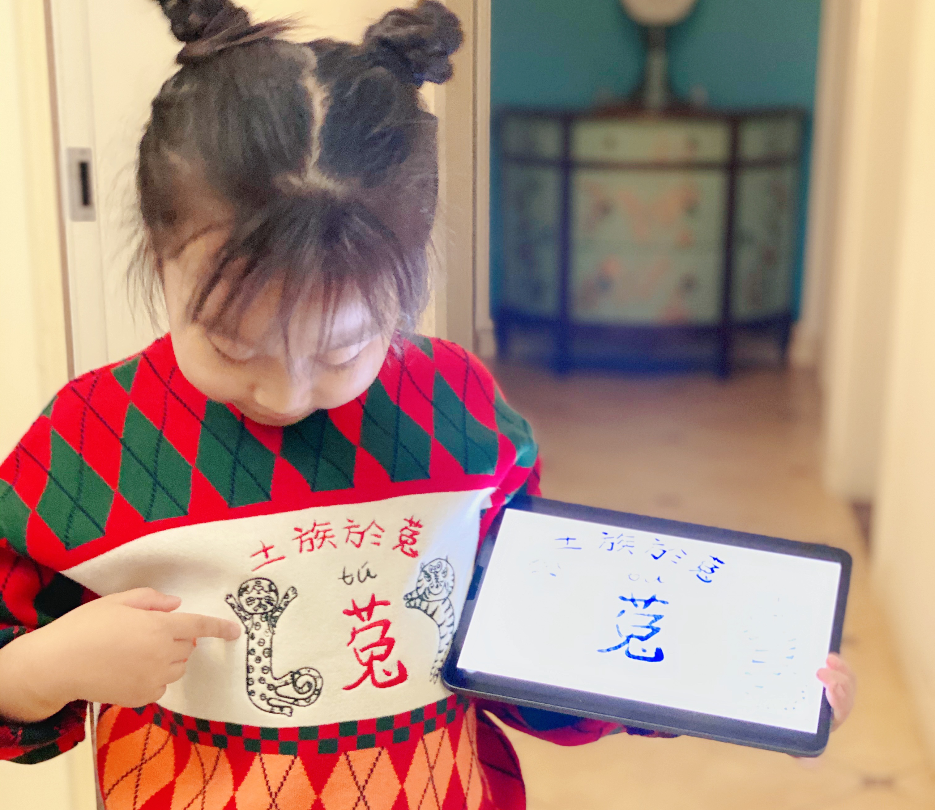而在天猫“识遗计划”展览现场,前来参观的小学生们认起了眼前的非物质文化遗产:原来“土族於菟”是青海的一种传统舞蹈,长汀“公嫲吹”是福建的一种传统古乐,“米拉尕黑”是甘肃东乡族的民间文学。