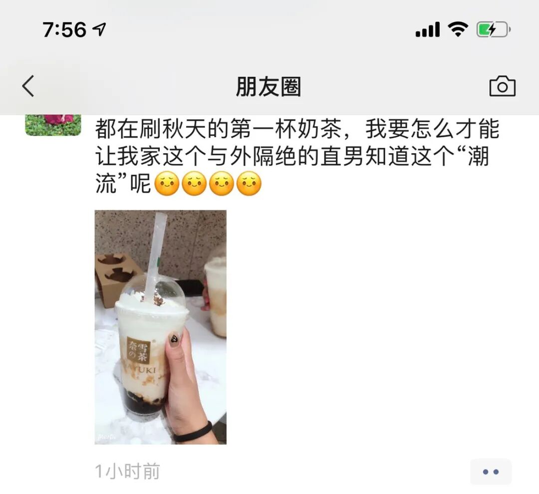 一时间,从微博到朋友圈,从小红书到抖音,几乎每个人都在刷这个话题。尽管很多人不知道这是什么梗,但只要你发一张奶茶的图片,并带上“秋天的第一杯奶茶”这几个字,你就是年轻人中最跟时尚潮流的崽。