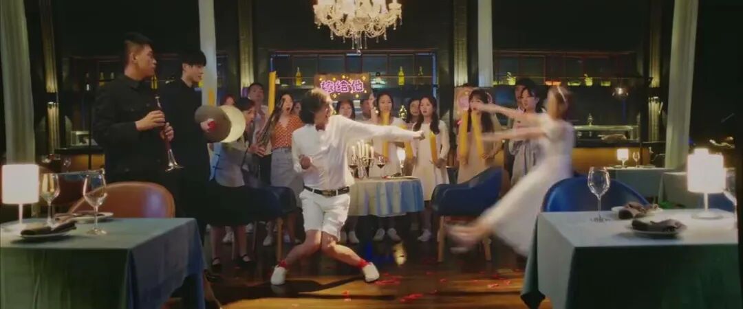 不知不觉中,这个词似乎也被大家贴上了各种负面的标签,走上了红黑的路线。一根筋,是否就真的意味着满满的恶意?答案自然是否定的。就好像最近万科拉上了张子栋, 一起拍了一支沙雕的广告,告诉你有时候做事情就是要具有“一根筋”的耐力和持久力。万科也凭借一部喜感满满的喜剧电影,正式官宣“万科影业”新业务并推向大众面前,在地产的“电影界”成功玩出圈。透过这个片子,我们也能找到“一根筋”的另类趣味解读。这是大型求婚现场,男主绞尽脑汁上演各种浪漫求婚创意,比如单膝下跪、牵上七彩气球,带着乐队弹唱。谁知道女生都毫不动摇,不为之感动。