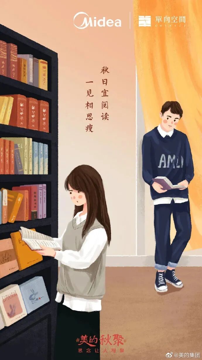 美的以秋字为创意延伸,围绕秋的部首字“揪啾瞅愁”,提炼了美的秋思的主题,寄托秋季思绪,传达「思念让人相聚」的品牌理念。