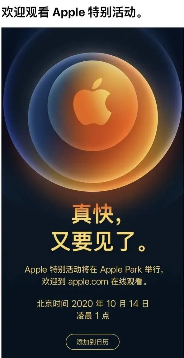 10月7日凌晨,苹果官网正式宣布,将于北京时间10月14日凌晨1点召开全球新品发布会,这将是苹果在今年举办的第二场秋季发布会。很多朋友对iPhone12望穿秋水,而9月的苹果秋季发布会推出了全新的Apple watch以及iPad四款新品,但iPhone12并未出现令人失望。而从最新官宣的发布会来看,苹果依然语焉不详。不少业内人士预测,这可能指即将发售的iPhone 12会支持5G网络和搭载A14 Bionic芯片。