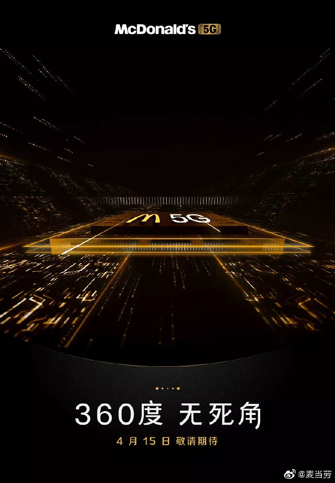 彼时5G的概念热度正盛。麦当劳在官微一口气放出了数张海报,并以#我5G了#为话题,来为「5G」新品预热。几张苹果风的海报+文案显得颇为高大上和正式。
