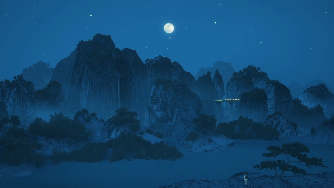 而在画面上,更是将细腻感拉满。从整体上看,画面中参考不少著名山水画大师的名作;从每一帧画面上看,每一个场景中的山、水、花、草、树都是由孩子们的诗歌拼凑而成。