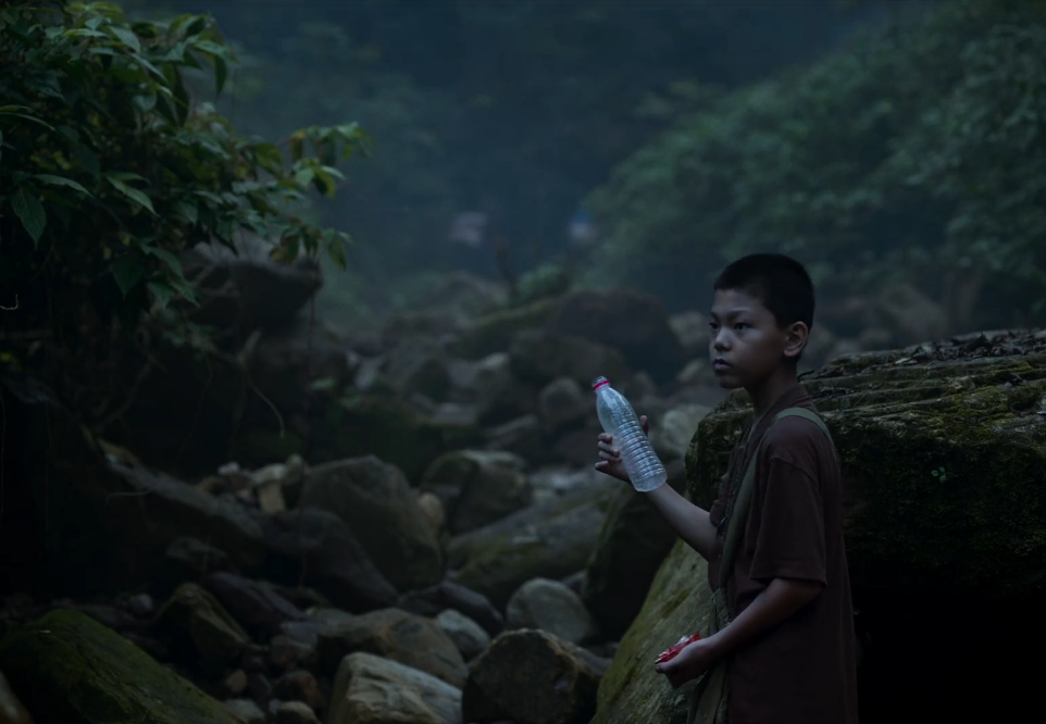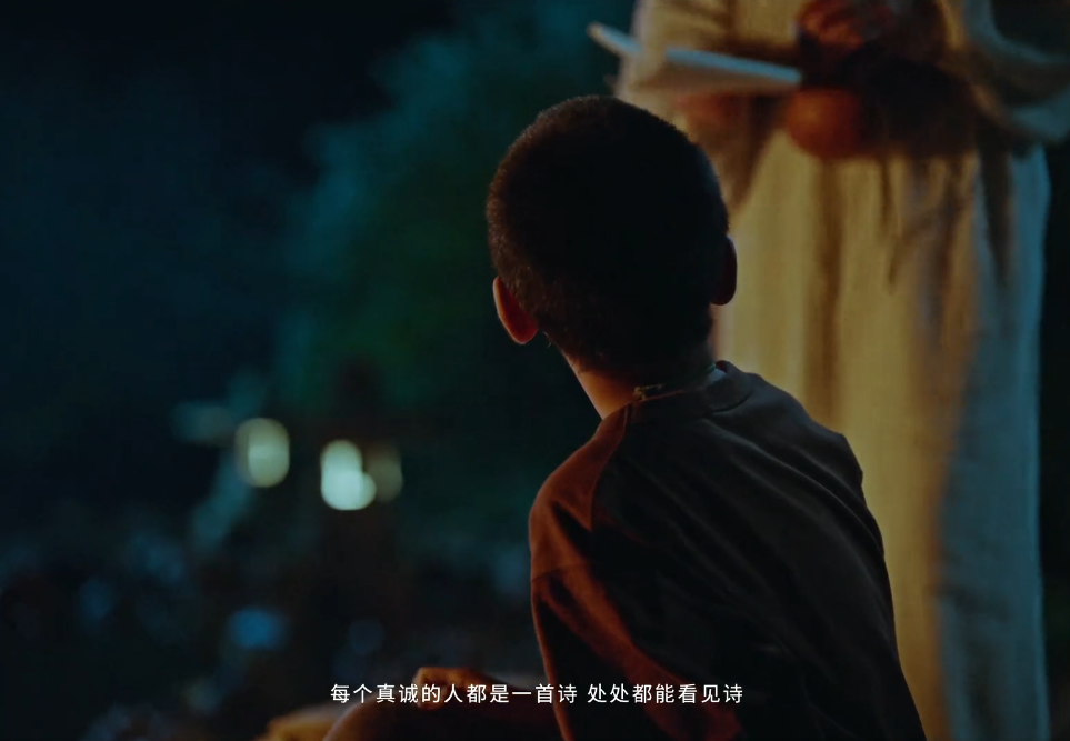甚至,为了不让广告的意味过浓,片子中农夫山泉的水瓶还被撕去了包装,只在片尾以“诗歌瓶”的方式出现。这也让这支《三千尺》,更显得“不广告”。