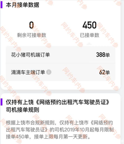 后台数据打通后,花小猪和滴滴快车将在多个维度竞逐。首先二者司机群体高度重合,运力“争夺”无可避免,而未来在用户订单上,滴滴继续将流量从快车向花小猪倾斜也未尝不是一种可能性。快车团队为花小猪输出大量员工后,如今正被老战友们侵蚀。滴滴快车曾经取代出租车,为滴滴赚取了第二桶金。现在,一个很现实的问题现在摆在它的面前,滴滴快车是否会被花小猪取代,成为滴滴的鸡肋? 日前,网约车行业的自媒体“网约车内参”发文,首次提到滴滴与花小猪后台数据打通的消息。10月12日,江西上饶的一位滴滴司机向该自媒体展示了一张接单截图,截图显示,该司机当月通过花小猪接单388笔,通过滴滴接单62笔,共接到450笔。自去年8月滴滴陆续上线限制月接单数量,倒逼只有人证没有车证的司机补全资质。数次调降接单数量后,大部分地区单证司机每月接单上限最多可以达到450单,甚至今年有长沙司机只能接到300单。接不了单,吃不饱饭使得部分司机多平台接单,客观上不利于滴滴掌握运力资源,平台不可能熟视无睹,近日有消息提到,滴滴用安全分的方法应对高峰时段司机多平台接单。 接单限制与稳固司机池之外,截图还透露出了两个关键信息。一个是该司机自述称,花小猪问世之前,他只跑滴滴。此外,截图显示的接单结构对比十分明显,司机在花小猪的接单量是滴滴的6倍。这是一个典型的从滴滴快车“投奔”花小猪的司机,对于快车而言,这意味着司机的“流失”。在过去几个月里,“流失”频繁发生,以至于一位滴滴快车部门的人士在接受《晚点》报道时表示,网约车内部对花小猪的增长数据盯得很紧,觉得“压力很大”。2019年12月,滴滴网约车公司副总裁孙枢从滴滴离职,自称创业网约车的新项目,这个项目就是后来的花小猪。实际上,花小猪背后的金主还是滴滴。
