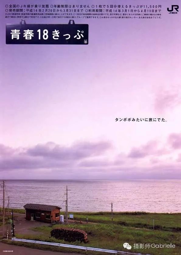 日本JR铁路曾出过主题为“青春18”的海报,目的是推广公司推出的“青春18乘车券”,虽然名叫青春18车票,但对使用者并没有年龄限制,所有的人都可以使用,持有青春18车票的用户可以在规定的期限里任选5天,随便乘坐全日本JR的普通车。