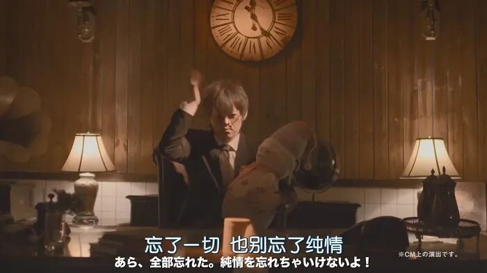 一身西装革履,盛装打扮的商务人士,却忘记了拉拉链,太尴尬!在这七个没有关联的场景里,后面都有着一句同样的文案“别忘了纯情”。这样一来,在观看的过程中无形地实现了循环洗脑。用万物皆可纯情的理念,融入生活场景,成功植入观众的心智。视频里浮夸但不做作的演绎,搭载无厘头的剧情,营造出了一种日式冷幽默的独特风趣。纯情商店街在撩拨大众笑点的同时,也巧妙地埋下了悬念。全片反复提及纯情,却没有对纯情进行任何解释,恰到好处的留白,吸引着观众的好奇心,会让人不自觉地去了解纯情商店街,有助于增加品牌的曝光度和顾客的关注度。早在《解禁纯情》之前,纯情商店街就让人迷惑很久了。在去年年底,纯情商店街将自家2019年的广告整理成一个合集,堪称迷惑广告大赏。不少网友表示,在感受鬼马创意魅力的时候,竟然神奇般达到了解压治愈的效果。